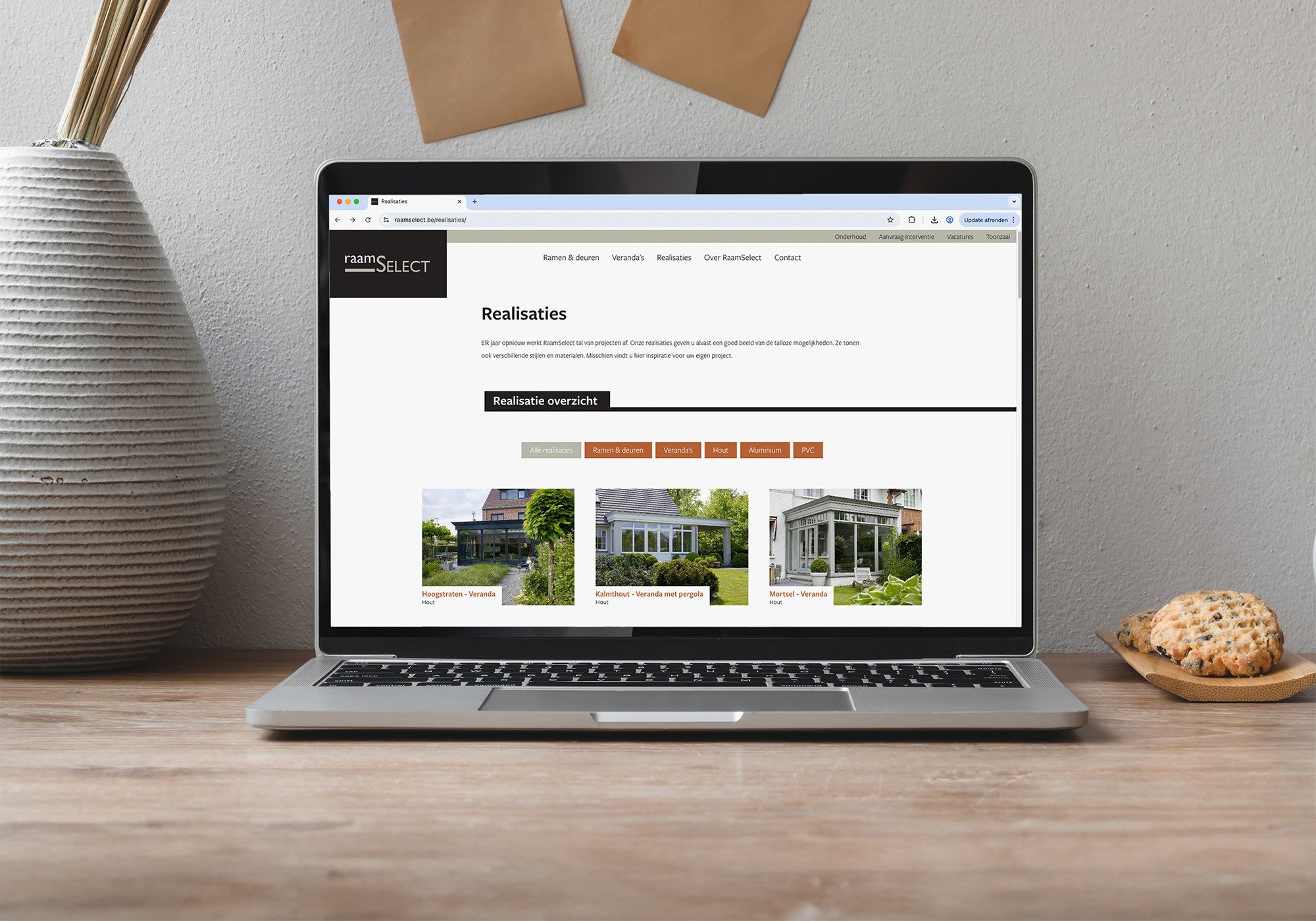 RaamSelect toont tal van realisaties op de website. Een filterfunctie geeft bezoekers de mogelijkheid alleen projecten te bekijken die voor hen relevant zijn. Zo kan je kiezen voor veranda’s of deuren en ramen, of voor één van de drie materialen waarmee RaamSelect werkt.